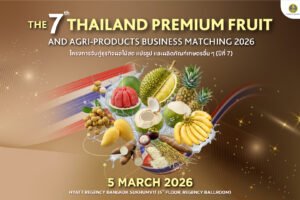 กรมส่งเสริมการค้าระหว่างประเทศ (DITP) เตรียมจัดกิจกรรมจับคู่ธุรกิจสินค้าผลไม้สด ผลไม้แปรรูป และผลิตภัณฑ์เกษตรอื่น ๆ (ปีที่ 7)” เพื่อผลักดันผลไม้ไทยสู่ตลาดโลก งานจะจัดขึ้นในวันพฤหัสบดีที่ 5 มีนาคม 2569 ณ โรงแรมไฮแอท รีเจนซี่ กรุงเทพฯ สุขุมวิท นางสาวสุนันทา กังวาลกุลกิจ…