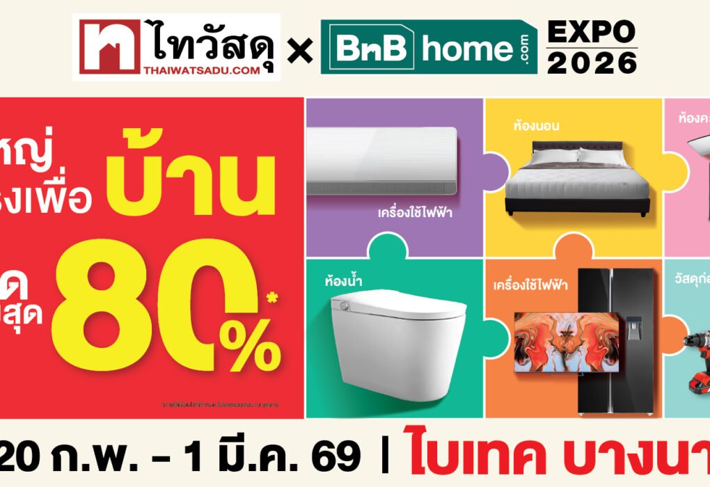 “ไทวัสดุ x บีเอ็นบี โฮม เอ็กซ์โป 2026” มหกรรมสินค้าบ้านสุดยิ่งใหญ่รับปีม้าไฟ ขนทัพสินค้าลดกระหน่ำสูงสุด 80% มอบความคุ้มค่ารับต้นปี ครบจบเรื่องบ้านในงานเดียว 20 ก.พ. – 1 มี.ค. 69 ณ ไบเทค บางนา