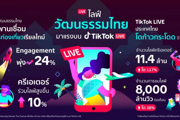 TikTok ผนึก ททท. ดัน “LIVE” ขับเคลื่อนวัฒนธรรม-เศรษฐกิจท่องเที่ยวไทย หลังทุบสถิติยอดชมไลฟ์ปี 68 พุ่งเดือนละ 8 พันล้านวิว
