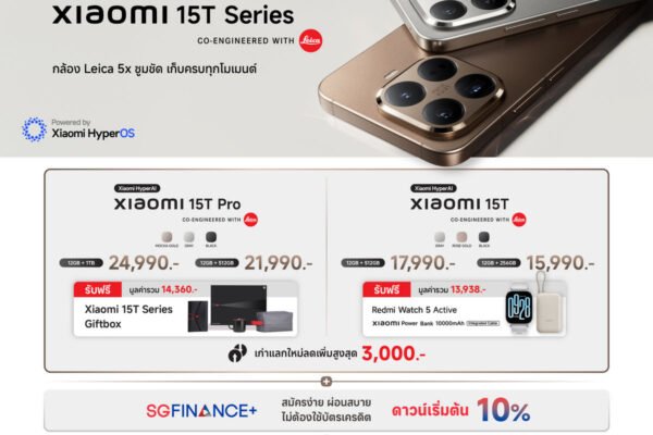 เสียวหมี่ ประเทศไทย วางจำหน่าย Xiaomi 15T Series สมาร์ทโฟนเรือธงที่มอบนวัตกรรมเทคโนโลยีมือถือขั้นสูงพร้อมภาพที่เหนือชั้นและการออกแบบที่ประณีต ในราคาเริ่มต้น 21,990 บาท และ Xiaomi Pad Mini แท็บเล็ตมินิเรือธงรุ่นแรกของเสียวหมี่ในตลาดโลก ในราคาเริ่มต้น 12,990 บาท อย่างเป็นทางการในประเทศไทย พร้อมโปรโมชันพิเศษตลอดเดือนตุลาคม…
