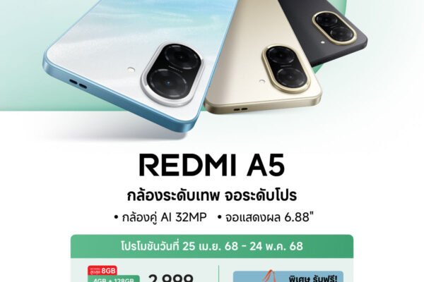 เสี่ยวหมี่วางจำหน่ายสมาร์ทโฟน Redmi A5 ชูสโลแกนกล้องระดับเทพจอระดับโปรในราคาเริ่มต้นเพียง 2,499 บาท