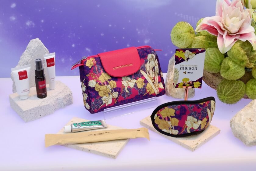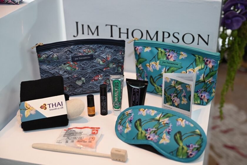 ภายในกระเป๋าประกอบด้วย Hand Cream กลิ่นกุหลาบ, Lip Balm บำรุงฝีปาก และ Deodorant Spray กลิ่นอายภูมิปัญญาไทย จาก SIRIVANNAVARI Maison รวมถึงผ้าปิดตาในสีสันและลวดลายเดียวกับกระเป๋า, แปรงสีฟันจากไม้ไผ่, ยาสีฟัน MARVIS, ที่อุดหูกันเสียงรบกวน โดยของใช้ทุกชิ้นคัดสรรมาเป็นพิเศษให้ผู้โดยสารชั้นธุรกิจ ที่เดินทางสู่จุดหมายปลายทาง 4 เมืองแฟชั่นและไลฟ์สไตล์ ได้แก่ มิลาน ปารีส โตเกียว และเซี่ยงไฮ้ ได้สัมผัสกับนิยาม Smooth as Silk อย่างแท้จริง ตั้งแต่วันที่ 1 พฤษภาคม 2568 เป็นต้นไป