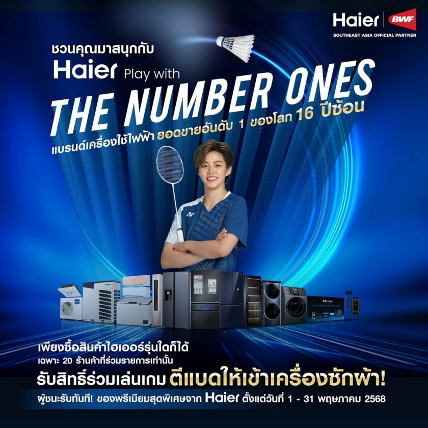 บริษัท ไฮเออร์ อีเลคทริคอล แอพพลายแอนซ์ (ประเทศไทย) จำกัด เฉพาะ 20 ร้านค้าที่ร่วมรายการเท่านั้น รับสิทธิ์ร่วมเล่นเกมตีแบดให้เข้าเครื่องซักผ้า เพื่อลุ้นรับของรางวัลสุดเอ็กซ์คลูซีฟ โดยผู้ชนะรับทันที! ของพรีเมียมสุดพิเศษ จากไฮเออร์ 1. เมื่อซื้อเครื่องใช้ไฟฟ้าไฮเออร์ครบ 25,000 บาท รับฟรี กระเป๋าแบดมินตันไฮเออร์ 2. เมื่อซื้อเครื่องใช้ไฟฟ้าไฮเออร์ครบ 18,000 บาท รับฟรี แก้วน้ำเก็บความเย็นไฮเออร์ และ 3. เมื่อซื้อเครื่องใช้ไฟฟ้าไฮเออร์ครบ 8,000 บาท รับฟรี ร่มพับไฮเออร์ โดยสามารถร่วมกิจกรรมได้ตั้งแต่วันที่ 1 – 31 พ.ค. 2568 พิเศษกว่าใคร! สำหรับผู้ชนะและลงทะเบียน 5 ท่านแรก รับสิทธิ์เข้าร่วมกิจกรรม Haier Fans Club Tour ณ กรุงเทพมหานคร ประเทศไทย ระหว่างวันที่ 17 – 19 พ.ค. 2568 จำนวน 5 รางวัล รางวัลละ 2 ที่นั่ง สามารถดูเงื่อนไขการร่วมสนุกเพิ่มเติมทาง Facebook Haier Thailand : https://www.facebook.com/HaierThailand
