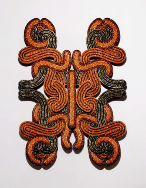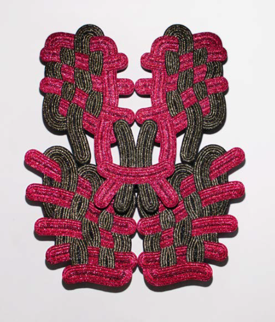 องค์ประกอบสำคัญของผลงานชุดนี้คือพื้นผิวที่เลียนแบบงานทอ—การจัดวางผ้าเป็นชั้น ๆ ราวกับเป็นผิวหนังชั้นที่สอง องค์ประกอบประติมากรรมเหล่านี้สะท้อนการสำรวจอย่างต่อเนื่องของศิลปินเกี่ยวกับเสื้อผ้าในฐานะสื่อกลางของตัวตน ที่เปิดเผยและปกป้องในเวลาเดียวกัน ความตึงเครียดระหว่างการปกปิดและเปิดเผยนั้นเห็นได้อย่างชัดเจน ขณะที่การประดับประดาตกแต่งกลายเป็นกลยุทธ์ในการรักษาเรื่องราวส่วนตัวพร้อมกับการแสดงออกถึงความเป็นปัจเจก