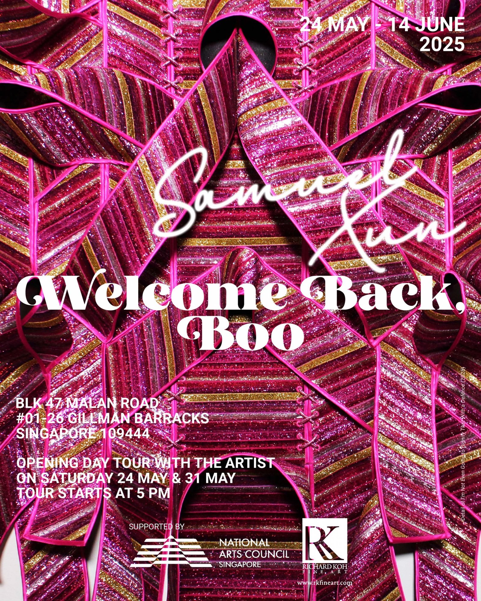 ริชาร์ด โคห์ ไฟน์อาร์ต (RKFA) สิงคโปร์ มีความยินดีที่จะประกาศนิทรรศการเดี่ยวครั้งแรกของซามูเอล ซุน ศิลปินชาวสิงคโปร์ ในชื่อ Welcome Back, Boo ซึ่งจะจัดแสดงระหว่างวันที่ 24 พฤษภาคม ถึง 14 มิถุนายน 2568 ที่ RKFA สิงคโปร์