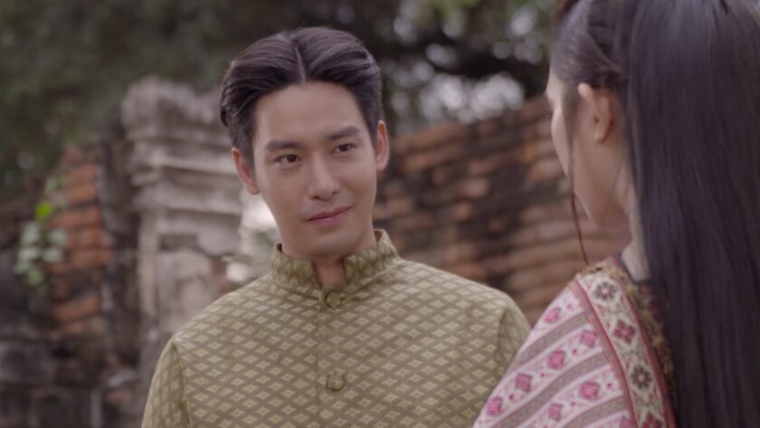 โดยเป็นฉากที่ พิมพ์พรรณ(เฌอเบลล์) วางอุบายชวนแพรทอง(เฌอเบลล์) ไปทำบุญในระหว่างนั้นได้พบเข้ากับเพลิง(ปรัชญ์) แพรทองเสียหลักล้ม เป็นจังหวะเดียวกับที่เพลิง เตรียมสีผึ้งจะป้ายเข้าที่ตัวแพรทอง แพรทองรู้สึกวูบวาบเหมือนมีลมผ่านหน้า แพรทองถูกเพลิงพาไปที่กระท่อมร้าง โดยพิมพ์พรรณมองตามอยู่ห่าง ๆ และรู้สึกสะใจที่พี่สาวตนกำลังจะตกเป็นเมียของเพลิง