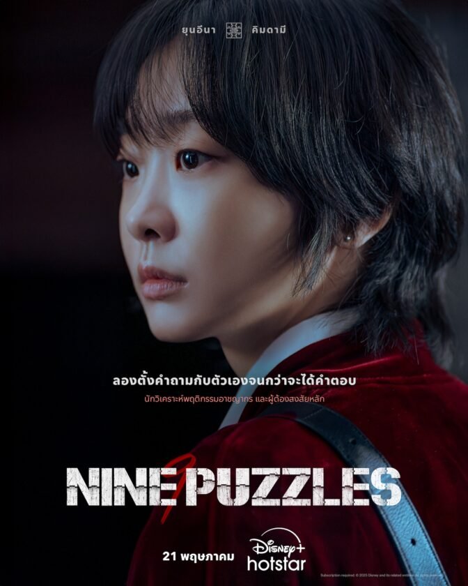 แฟน ๆ ซีรีส์แนวสืบสวนสอบสวน เตรียมไขปมปริศนาสุดระทึกไปกับ “Nine Puzzles” ซีรีส์ออริจินัลจาก Disney+ Hotstar ที่ประกบคู่นักแสดงมากความสามารถอย่าง คิมดามี (จากผลงานเรื่อง Itaewon Class) และ ซนซอกกู (จากผลงานเรื่อง Big Bet และ D.P.) ถ่ายทอดเรื่องราวปริศนาของคดีฆาตกรรมต่อเนื่อง ที่จะทิ้งปมให้คนดูอยากติดตามหาเบาะแสไปตลอดทั้งเรื่อง อีกทั้งความสัมพันธ์ที่ซับซ้อนระหว่างโพรไฟล์เลอร์อัจฉริยะ กับตำรวจสายสืบผู้ไม่เคยลบเธอจากลิสต์ผู้ต้องสงสัยจะยิ่งทำให้คุณคาดเดาทิศทางเรื่องไม่ได้ ซีรีส์ทริลเลอร์สืบสวนคุณภาพแห่งปีที่ไม่เหมือนใครทั้ง 11 ตอนนี้ จะพาคุณดำดิ่งไปกับความลึกลับของคดีพร้อมกับความสัมพันธ์ที่ยากจะเชื่อใจ พร้อมเปิดให้สตรีมพร้อมกัน 6 ตอนรวดได้ในวันที่ 21 พฤษภาคมนี้ พร้อมพากย์ไทยและซับไทยบน Disney+ Hotstar เท่านั้น