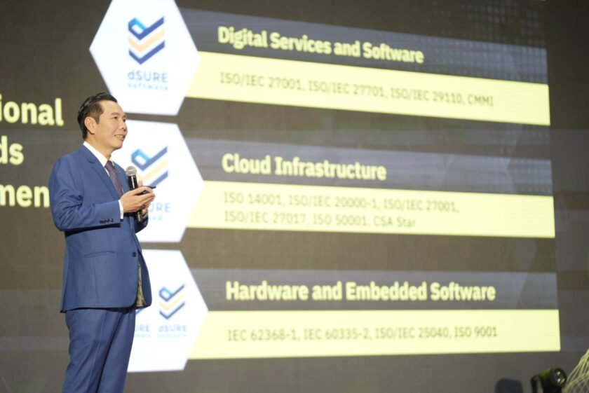 ผศ.ดร.ณัฐพล กล่าวต่อว่า Global ISO Conference 2025 ยังถือเป็นเวทีสำคัญที่ประเทศไทยจะได้แนะนำ dSURE ตราสัญลักษณ์ที่มอบให้กับผลิตภัณฑ์และบริการดิจิทัลของไทยที่ผ่านการทดสอบมาตรฐานด้านความปลอดภัยในการใช้งาน (Safety) ความสามารถในการทำงาน (Functionality) และความมั่นคงปลอดภัยไซเบอร์ (Cybersecurity) โดยดีป้าได้รับความร่วมมือจากสภาอุตสาหกรรมในการส่งเสริมให้ผู้ประกอบการไทยได้รับมาตรฐานระดับสากลที่เป็นหนึ่งในเงื่อนไขที่จะทำให้ต่อยอดสู่การขึ้นทะเบียน “บัญชีบริการดิจิทัล” แหล่งรวบรวมสินค้า/บริการดิจิทัลจากผู้ประกอบการและผู้ให้บริการดิจิทัลไทยที่มีคุณสมบัติครบถ้วน เป็นไปตามข้อกำหนดด้านมาตรฐาน คุณภาพ ราคาสมเหตุสมผล ซึ่งจะช่วยสร้างความโปร่งใสและความเชื่อมั่นให้กับผู้ใช้งานและภาคธุรกิจ โดยทั้งสองกลไกเป็นตัวอย่างสำคัญของการสร้างมาตรฐานภายในประเทศที่สามารถต่อยอดสู่การยอมรับในระดับสากล