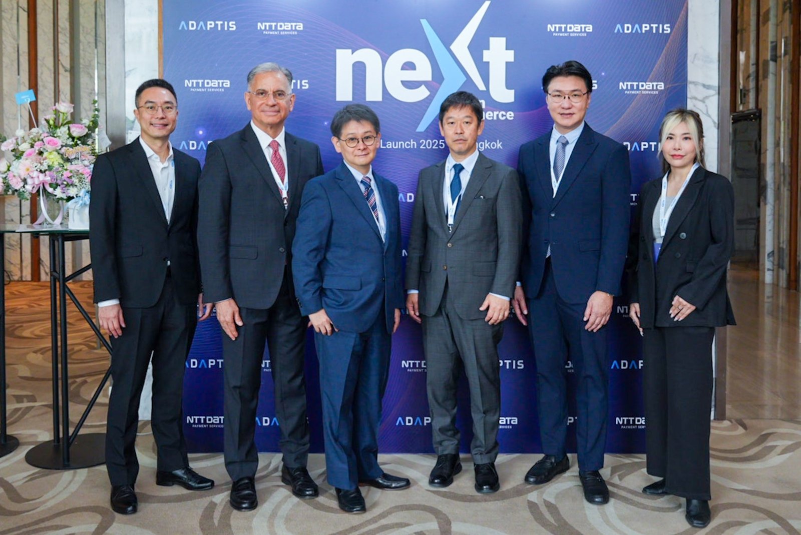 ฌอนเฮซ (ที่ 2 จากซ้าย) ประธานบริหารกลุ่มบริษัท NTT DATA Payment Servicesชินอิจิโร่ นิชิกาวะ (ที่ 3 จากซ้าย) หัวหน้าสายงาน Global Payments and Services บริษัท NTT DATA Japan ปริญญาจินันทุยา (ที่ 2 จากขวา) ประธานเจ้าหน้าที่บริหาร บริษัท เอ็นทีที เพย์เมนต์ เซอร์วิสเซส (ประเทศไทย) จำกัด พร้อมด้วย เปิดตัว ADAPTIS (อะแดปทีส) อย่างเป็นทางการในประเทศไทย ซึ่งเป็นโซลูชันใหม่ในการชำระเงินแบบครบวงจร ที่ตอบโจทย์ทุกความต้องการทางธุรกิจ พร้อมจัดเสวนาระดับผู้นำภายใต้หัวข้อ “Next in Commerce: Local Roots to Global Reach” โดยมี มาซาโนริคุริฮาระ (ที่ 3 จากขวา) ธนวัฒน์กิตติสุวรรณ (คนซ้ายสุด) และ ซายูริฮากิฮาระ (คนขวาสุด) มาร่วมเป็นเกียรติและร่วมเสวนา ณ โรงแรมฮิลตัน สุขุมวิท กรุงเทพฯ เมื่อวันอังคารที่ 27 พฤษภาคม 2568