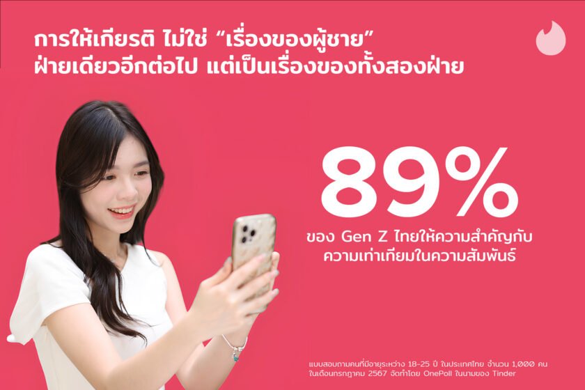 TinderⓇเผย 89% เน้นความสัมพันธ์แบบเท่าเทียม