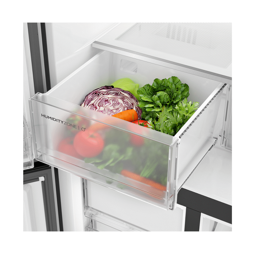 - HCS: Humidity Zone that best for fresh veggies and fruits คงความสดยาวนานยิ่งขึ้นด้วยโซนควบคุมความชื้นคงที่ที่ 90% เหมาะสำหรับผักและผลไม้ ช่วยคงความสดได้ยาวนานขึ้นถึง 2 เท่า