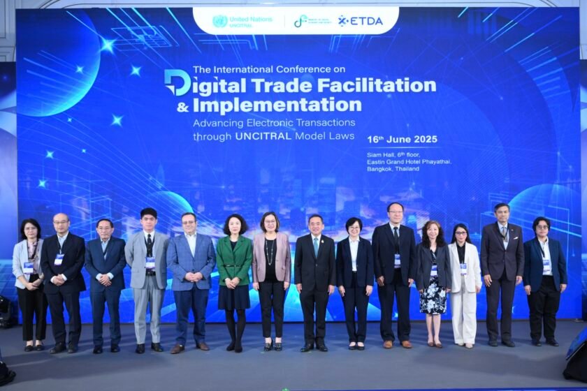 กระทรวงดิจิทัลเพื่อเศรษฐกิจและสังคมโดยสำนักงานพัฒนาธุรกรรมทางอิเล็กทรอนิกส์ (ETDA) จัดการประชุมนานาชาติ The International Conference on Digital Trade Facilitation and Implementation: Advancing Electronic Transactions through UNCITRAL Model Laws เวทีแลกเปลี่ยนแนวคิดเกี่ยวกับการส่งเสริมธุรกรรมอิเล็กทรอนิกส์และการค้าดิจิทัลข้ามพรมแดน ผ่านกรอบกฎหมายและนวัตกรรมดิจิทัล เพื่อส่งเสริมธุรกรรมทางอิเล็กทรอนิกส์ผ่านกฎหมายตัวอย่างของ UNCITRAL เช่น กฎหมายตัวอย่างว่าด้วยเอกสารโอนสิทธิทางอิเล็กทรอนิกส์ (MLETR) เวทีสำคัญที่รวมผู้เชี่ยวชาญระดับโลก ผู้กำหนดนโยบาย นักวิชาการ และผู้ปฏิบัติงานจากหลากหลายภาคส่วน ร่วมแลกเปลี่ยนแนวคิดเกี่ยวกับการส่งเสริมธุรกรรมอิเล็กทรอนิกส์และการค้าดิจิทัลข้ามพรมแดน โดยมีเป้าหมายให้ประเทศไทยสามารถปรับปรุงกฎหมายที่เกี่ยวข้อง และเตรียมพร้อมสำหรับการเข้าร่วมกรอบความร่วมมือทางกฎหมายของ UNCITRAL