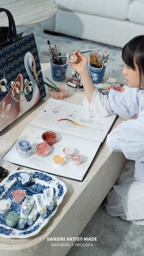 - Narinsiri X PROUDFA (โมโม่ – พราวฟ้าสันติอัศวราภรณ์) ศิลปินรุ่นใหม่จากโครงการ Artizen ของแสนสิริ ที่ตั้งใจร่วมถ่ายทอดแรงบันดาลใจจากองค์ประกอบทางสถาปัตยกรรมและประติมากรรมภายในโครงการ ลงบนกระเป๋าโอน ผ่าน 3 สัญลักษณ์หลักที่สะท้อน DNA ของบ้าน Narinsiri ได้อย่างชัดเจน ด้วยเส้นสายที่วิจิตรบรรจง โทนสีพาสเทลที่สงบนิ่ง ถ่ายทอดอารมณ์ Quiet Luxury ได้อย่างนุ่มนวลแต่ทรงพลัง กลายเป็นงานออกแบบที่ผสานสุนทรียะทางศิลปะเข้ากับปรัชญาการอยู่อาศัยได้อย่างงดงาม