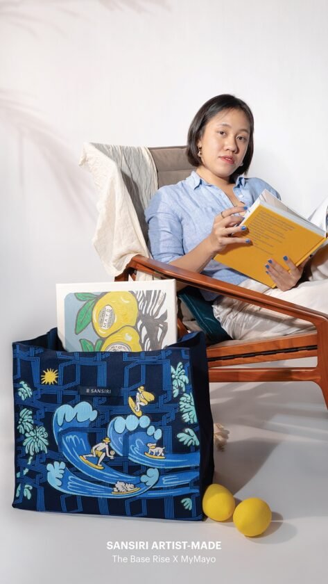 - THE BASE Rise X MyMayo (เน็ท – ณัฐกฤตาโคตรสมบัติ) อีกหนึ่งในศิลปินรุ่นใหม่จากโครงการ Artizen ของแสนสิริ ที่ถ่ายทอดแนวคิดงานศิลปะผ่าน Brush สไตล์ฟรีแฮนด์ลงบนกระเป๋าโอน ด้วยจังหวะเส้นที่พลิ้วไหวราวคลื่นทะเลไล่เรียงเรื่องราวของ ‘สเปซ’ ตั้งแต่กลิ่นอายของเมืองเก่าภูเก็ต สู่สเปซภายในโครงการที่เปล่งประกายด้วยเฉดสีของแสงแรกแห่งวัน ต่อเนื่องไปจนถึงบรรยากาศริมทะเล สะท้อนความเป็น THE BASE Rise คอนโดมิเนียมร่วมสมัยที่สร้างประสบการณ์ที่เชื่อมโยงกันระหว่างศิลปะและธรรมชาติอย่างลงตัว
