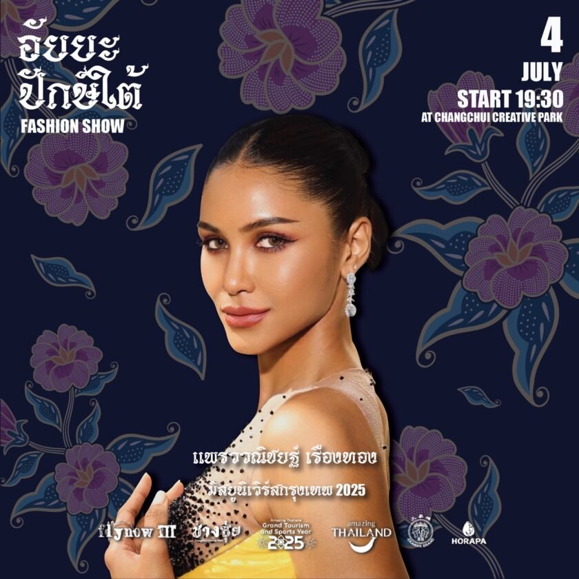 ปีที่แล้วว่าเด็ด ปีนี้รับรองความเผ็ดคูณสอง! อัยยะปักษ์ใต้ 2 ชวนคุณไปตื่นตาตื่นใจกับแฟชั่นโชว์กลางแจ้งสุดพิเศษจาก 6 แบรนด์ดีไซน์เนอร์จากภาคใต้ ทั้ง Clothear Vestiare, D’Arcy the Designs, Keziah, Spybrand, Yabulan และ Yayee ที่นำแรงบันดาลใจจาก “สีสัน เส้นสาย ลายเส้น” ของผืนผ้าจากภาคใต้ มาสะบัดบนรันเวย์ (บริเวณลานจอดเครื่องบิน) ที่เป็นเอกลักษณ์ของช่างชุ่ย ในวันศุกร์ที่ 4 กรกฎาคม 2568 เวลา 19.30 น. ภายใต้ธีม “การเดินทางมาเชิญชวนคนกรุงเทพไปสัมผัสเสน่ห์ของภาคใต้” พร้อมทัพนางแบบนายแบบกว่า 40 ชีวิต นำทีมโดย ทราย – สิรณัฐ สก๊อต, ลูกเกด – เมทินี กิ่งโพยม, สกาย – กิ่งโพยม ชาร์เพิร์ล, เดล – นฤมล พิมพ์ภักดี, แพรววณิชยฐ์ เรืองทอง, และ เทีย ทวีพาณิชย์พันธุ์