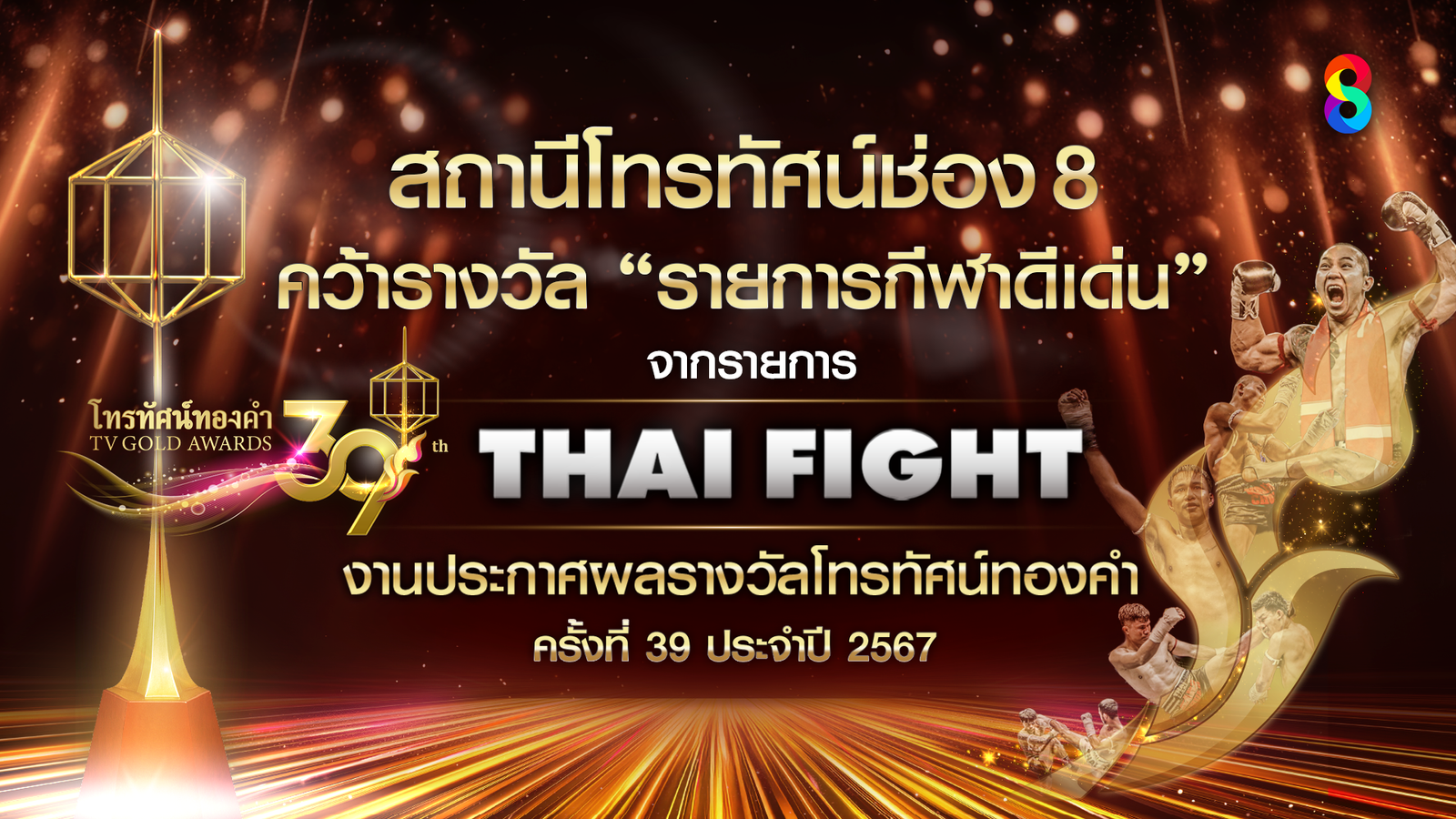 สถานีโทรทัศน์ช่อง 8 ในเครือ อาร์เอสกรุ๊ป ตอกย้ำความเป็นผู้นำด้านรายการมวยไทย King of Fighting Sports ภายใต้แนวคิด “มวยมันส์ต้องดูที่ช่อง 8” พร้อมการันตีคุณภาพด้วยเรตติ้งอันดับ 1 จากรายการ THAI FIGHT ได้รับรางวัล “รายการกีฬาดีเด่น” จากงานประกาศรางวัลโทรทัศน์ทองคำ ครั้งที่ 39 ประจำปี 2567 ซึ่งเป็นหนึ่งในรายการจากเซกชันกีฬาของช่อง 8 ที่ได้รับการเสนอชื่อเข้าชิงและได้รับการคัดเลือกในเวทีอันทรงเกียรติครั้งนี้