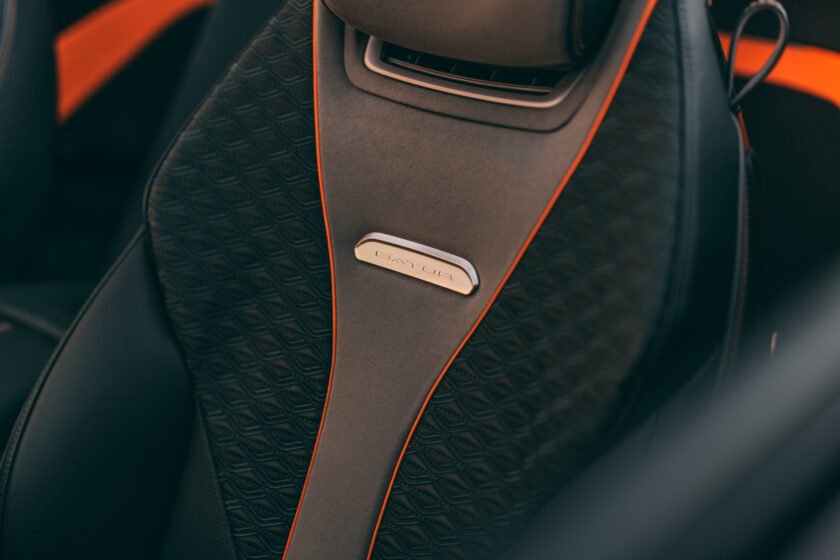 ภายนอกที่ดูโดดเด่นสะดุดตา คือ แถบ Batur Racing Stripe ที่ใช้เฉดสีเทา Gloss Porpoise ขนาบข้างด้วยแถบด้านนอกสี Gloss Mandarin เพื่อให้เข้ากันกับหนังที่ตกแต่งด้วยคู่เฉดสีเดียวกันภายในห้องโดยสาร เชื่อมต่อผลงานสุดสร้างสรรค์แบบไร้รอยต่อระหว่างภายนอกและภายในห้องโดยสาร