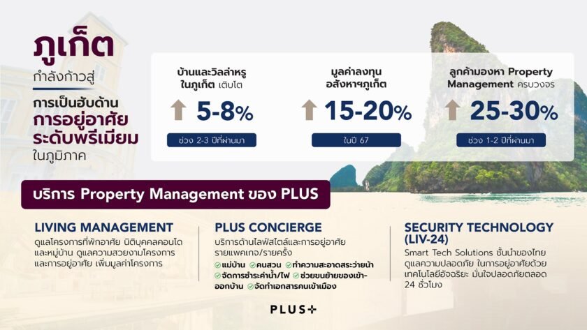 พลัสฯ เรารุกตลาดภูเก็ตมากว่า 18 ปี มีความเข้าใจลึกซึ้งในพื้นที่ภูเก็ตและประสบการณ์ตรงในการบริหารโครงการระดับพรีเมียม รวมไปถึงมาตรฐานการให้บริการที่พัฒนามาอย่างต่อเนื่อง พลัสฯ จึงพร้อมเป็นหนึ่งในแรงขับเคลื่อนสำคัญของตลาดอสังหาริมทรัพย์ภูเก็ต ทั้งในการส่งมอบบริการ Property Management คุณภาพที่ออกแบบมาเพื่อภูเก็ตโดยเฉพาะ รวมไปถึง ร่วมเป็นส่วนหนึ่งในการผลักดันภูเก็ตจากจุดหมายด้านการท่องเที่ยว สู่การเป็นศูนย์กลางใหม่ของการอยู่อาศัยพรีเมียมในระดับภูมิภาค