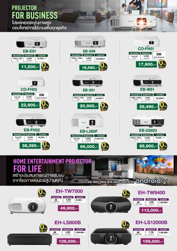 - โปรเจคเตอร์เพื่อธุรกิจ และ โฮมโปรเจคเตอร์ สำหรับความบันเทิงภายในบ้าน