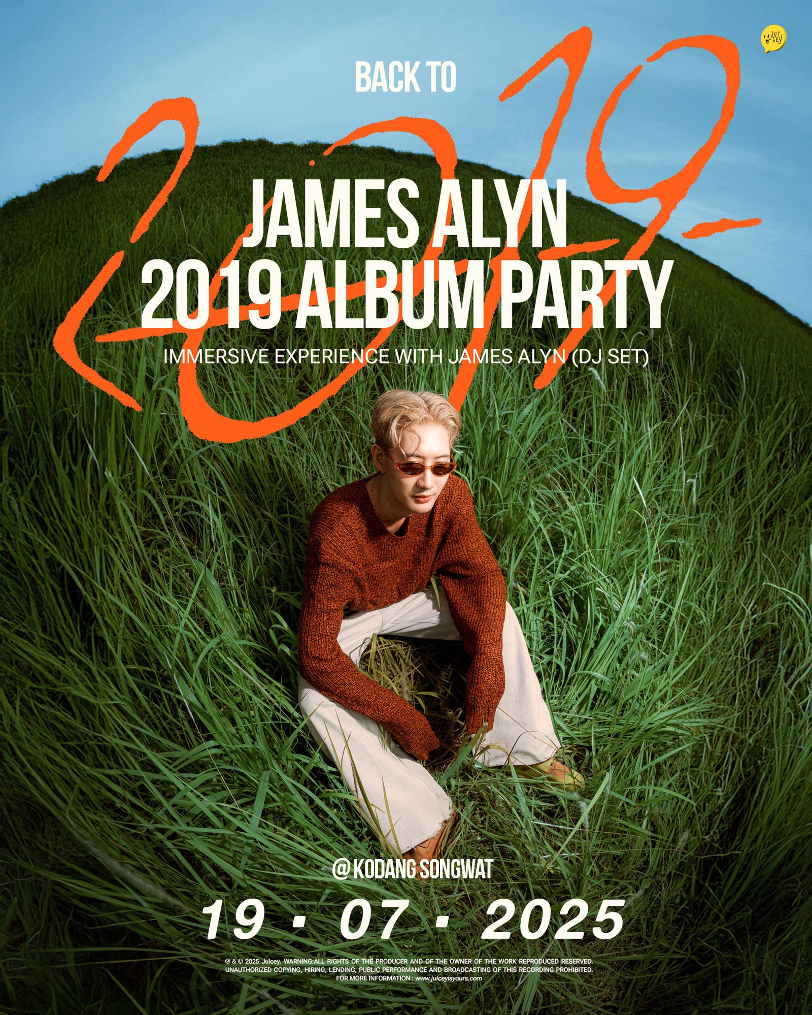 มาร่วมดื่มด่ำความทรงจำในบรรยากาศสุดพิเศษไปกับ DJ Set จาก James Alyn และเซอร์ไพรส์มากมายที่แฟนเพลงจะได้สัมผัสแบบใกล้ชิด ในวันเสาร์ที่ 19 กรกฎาคม 2568 เริ่มเวลา 14:00 น. ณ ตรอกโกดังทรงวาด บัตรยืนราคา 600 บาท พร้อมรับ CD อัลบั้ม “2019” หน้างาน (1 แผ่น/บัตร) จำกัด 4 สิทธิ์ต่อท่าน