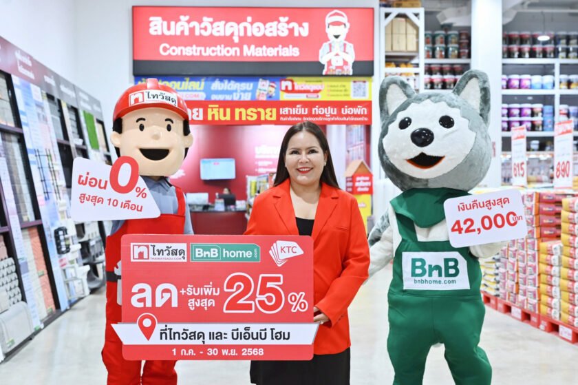พิเศษยิ่งขึ้น สำหรับสินค้ากลุ่มโครงสร้างซ่อมแซมและตกแต่งบ้าน อาทิ กระเบื้องหลังคา แผ่นยิปซัม แผ่นบอร์ดพื้นผนังและเพดาน งานเหล็ก ไม้ตกแต่งผนัง อิฐอัดแรง ปูน อุปกรณ์เครื่องมือช่าง และวัสดุก่อสร้าง สามารถใช้คะแนน KTC แลกรับส่วนลด 15% โปรโมชั่นนี้เป็นอีกหนึ่งความตั้งใจของไทวัสดุ และบีเอ็นบี โฮม ในการยกระดับประสบการณ์ช้อปที่สะดวกสบายและตอบโจทย์ไลฟ์สไตล์ลูกค้าที่ให้ความสำคัญกับการใช้จ่ายอย่างคุ้มค่ามากที่สุด”