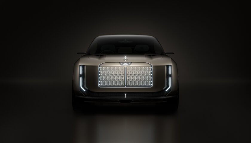 เมื่อมองตัวรถจากด้านหน้าตรง หลักการออกแบบภายนอกที่สำคัญประการที่สองคือ ‘กระจังหน้าแบบไอคอนิก’ ที่แม้จะมีการเปลี่ยนแปลงเป็นระบบส่งกำลังแบบพลังงานไฟฟ้า แต่ยังคงสะท้อนความสำคัญของภาพลักษณ์อันเก่าแก่ของแบรนด์ โดยเฉพาะอย่างยิ่งเมื่อมีเส้นแนวตั้งอยู่ตรงกลาง
