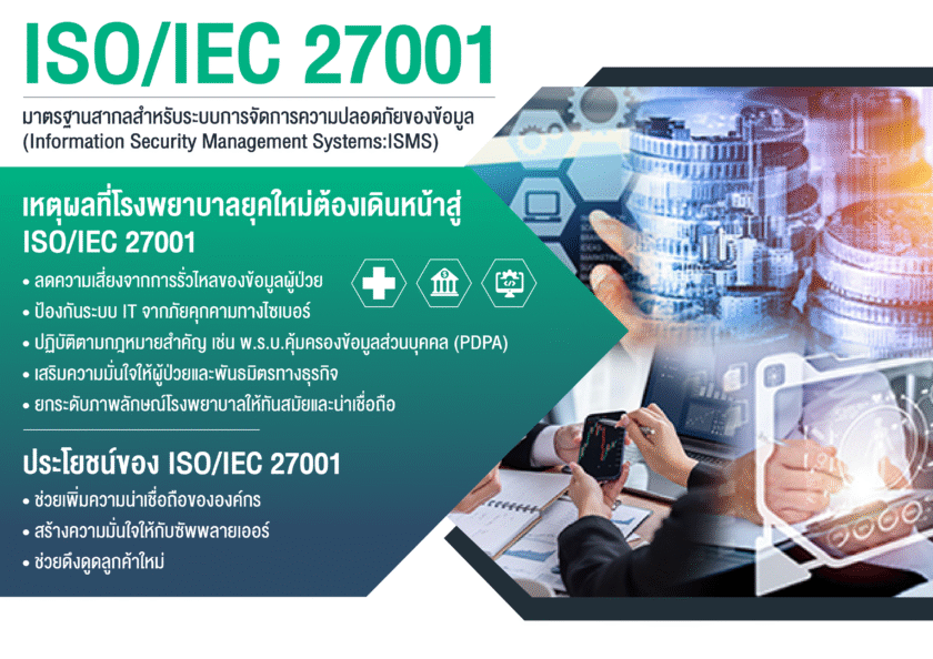 ISO/IEC 27001 ไม่ใช่แค่เรื่องของฝ่ายไอที แต่เป็นมาตรฐานใหม่ของโรงพยาบาลยุคดิจิทัล เพื่อเป็นหลักประกันที่สร้างความมั่นใจให้กับผู้ป่วยในโลกยุคที่ข้อมูลมีความอ่อนไหวเปราะบางกว่าที่ ในวันที่โรงพยาบาลเป็นมากกว่าสถานพยาบาล แต่คือองค์กรที่ดูแล ทั้งสุขภาพกายและข้อมูลส่วนบุคคลของประชาชน การเดินหน้าสู่มาตรฐาน ISO/IEC 27001 คืออีกหนึ่งก้าวสำคัญที่สะท้อนจุดยืนขององค์กรว่ามีความรับผิดชอบต่อสังคม