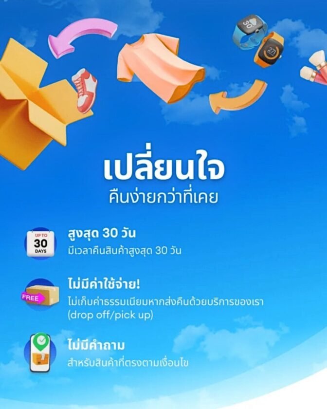 เคยไหม สั่งเสื้อผ้าออนไลน์แล้ว ‘ไม่เป๊ะ’ ไซส์หลวมนิด สีเพี้ยนหน่อย หรือไม่มั่นใจว่าจะใส่แล้วรอด จนลังเลอยู่นานก่อนกดซื้อ LazLOOK เข้าใจอินไซต์สายแฟ เลยอัปเดตนโยบาย “เปลี่ยนใจ” ให้คืนสินค้าได้ง่าย สะดวก และไม่มีค่าใช้จ่าย ให้เวลาตัดสินใจเปลี่ยนสินค้าได้ภายใน 30 วัน พร้อมขั้นตอนที่ง่าย รวดเร็ว เลือกได้ทั้งบริการ รับคืนฟรีถึงบ้าน หรือส่งคืนเองที่จุดบริการใกล้บ้าน เพียงสินค้าตรงตามเงื่อนไข ก็สามารถคืนได้ทันที ไม่ต้องตอบคำถามให้วุ่นวาย