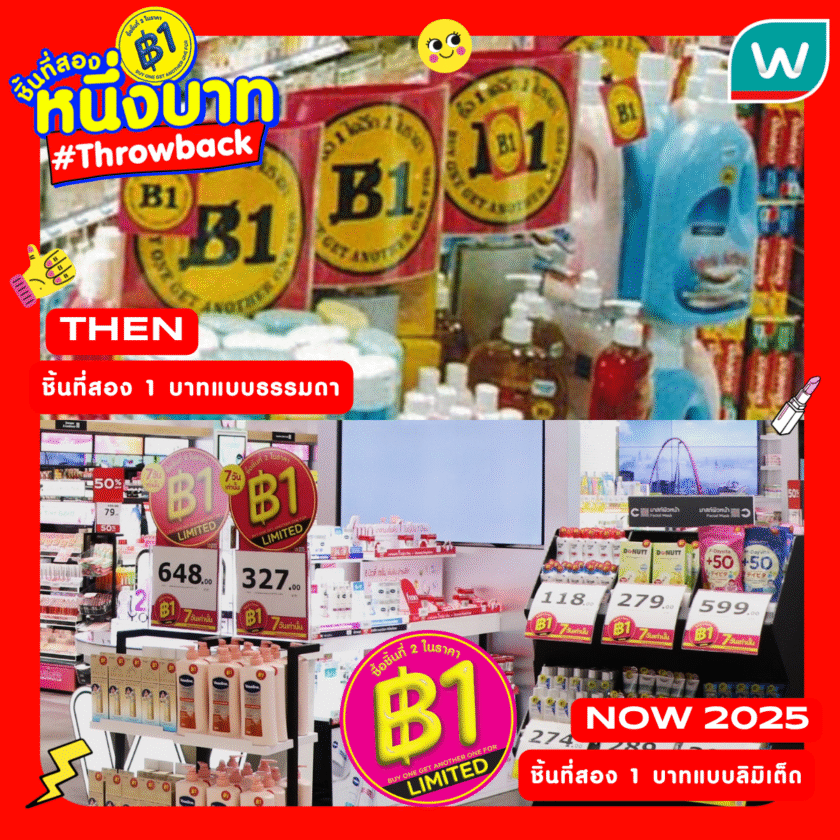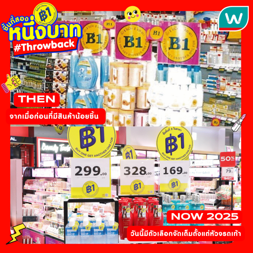 มีใครเคยเป็นบ้าง? ตอนเดินเข้าร้านวัตสันแล้วเจอแคมเปญ “ชิ้นที่สอง 1 บาท” ทีไร ต้องมีของติดมือกลับบ้านด้วยทุกครั้ง วันนี้ วัตสันผู้นำร้านเพื่อสุขภาพและความงามอันดับหนึ่งของไทย ชวนคุณย้อนเวลากลับไปสู่จุดเริ่มต้นของหนึ่งในไอคอนนิคแคมเปญที่เป็นเสมือนคู่แฝดของแบรนด์ที่ “สร้างทั้งความคุ้มค่าและความทรงจำร่วมให้กับลูกค้าหลายล้านคน”