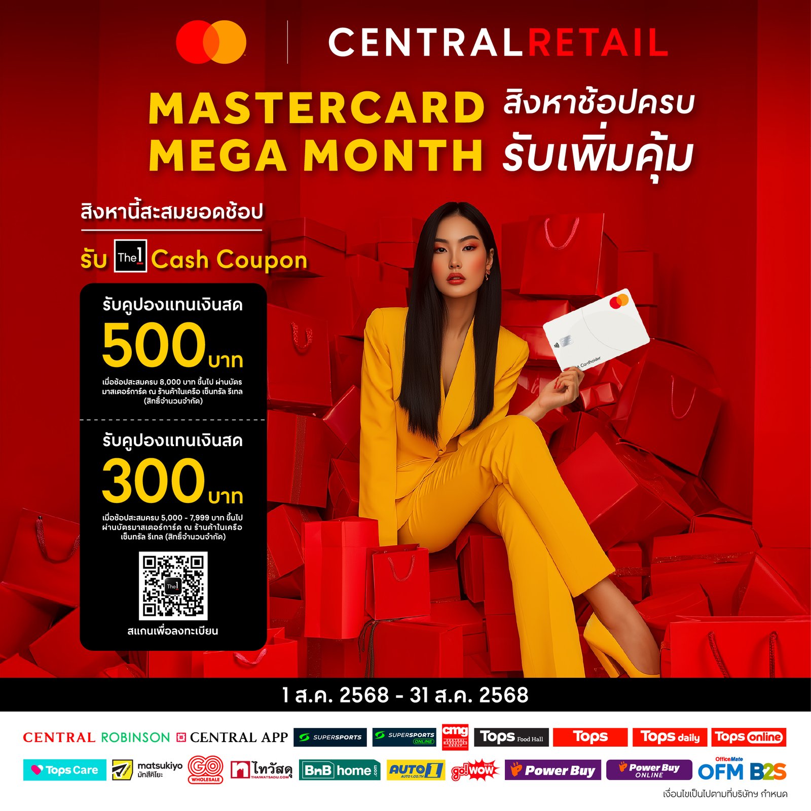 เตรียมตัวให้พร้อม! เซ็นทรัล รีเทล จับมือ มาสเตอร์การ์ด จัดแคมเปญ “Mastercard Mega Month” มอบสิทธิพิเศษสุดเอ็กซ์คลูซีฟให้ลูกค้าที่ใช้จ่ายผ่านบัตรมาสเตอร์การ์ด ตลอดเดือนสิงหาคมนี้เพียงช้อปสะสมที่ร้านค้าในเครือเซ็นทรัล รีเทลที่ร่วมรายการครบ