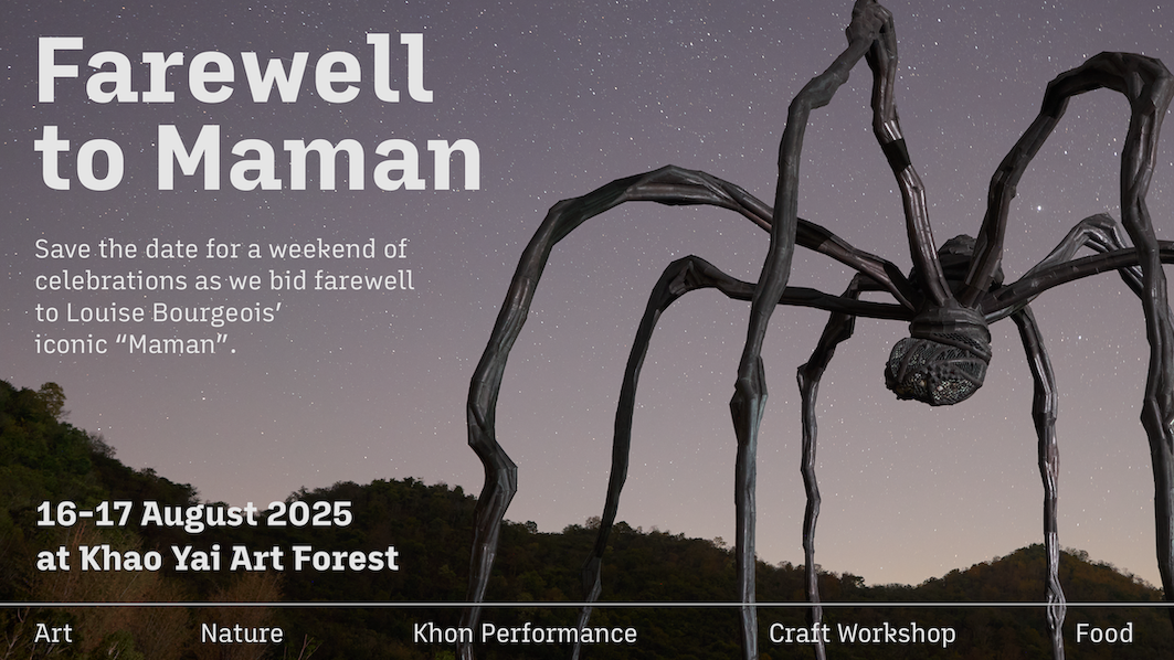 เดือนสิงหาคมนี้ การจัดแสดง “Maman” ในประเทศไทย กำลังจะสิ้นสุดลง ก่อนที่ผลงานจะเดินทางกลับมหานครนิวยอร์ก เขาใหญ่ อาร์ต ฟอเรสต์ ขอเชิญทุกท่านร่วมงาน “Farewell to Maman” เพื่อสัมผัสประติมากรรมระดับตำนานนี้อย่างใกล้ชิด ท่ามกลางบรรยากาศธรรมชาติอันงดงาม พร้อมกิจกรรมพิเศษที่คัดสรรอย่างพิถีพิถัน เพื่อให้การอำลาครั้งนี้ตราตรึงใจไม่รู้ลืม