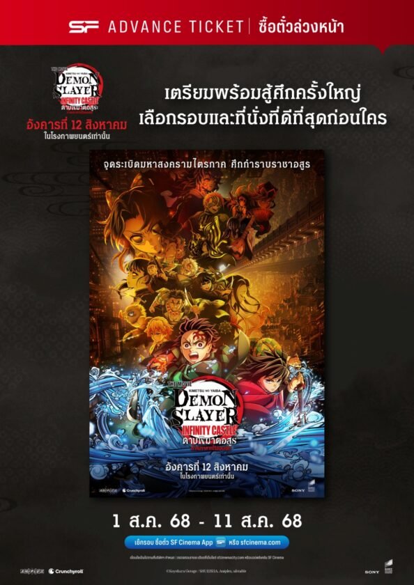 โรงภาพยนตร์ในเครือ เอส เอฟต้อนรับอนิเมะที่มาแรงที่สุดกับปฐมบทการต่อสู้ครั้งใหม่ของเหล่านักล่าอสูรใน “Demon Slayer: Kimetsu no Yaiba – The Movie: Infinity Castle – Part 1: Akaza Returns” (ดาบพิฆาตอสูร เดอะมูฟวี่: ศึกปราสาทไร้ขอบเขต องก์ที่ 1 : การกลับมาของอาคาสะ)จัดเต็มรอบฉายเอาใจแฟนมังงะให้ดูกันแบบจุใจและดูสนุกที่สุดกับระบบเสียงDOLBY ATMOSภาพคมชัดระดับ 4K พร้อมที่นั่งกว้างสบายกว่าที่โรงภาพยนตร์ZIGMA CINESTADUIM