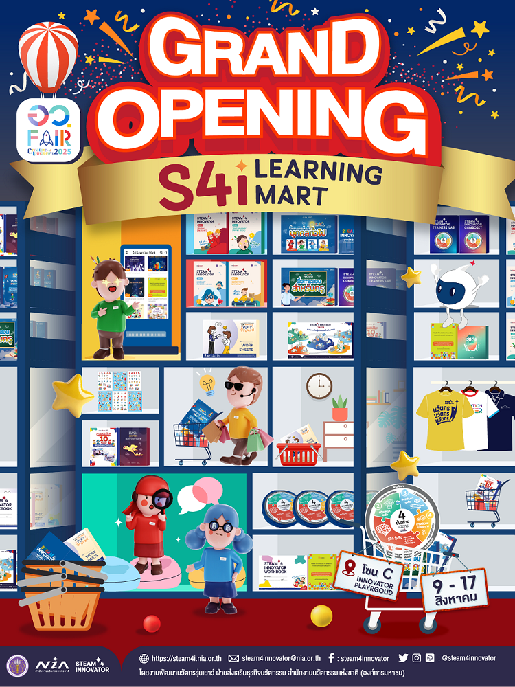 และ 3. S4i Learning Mart – “ช้อปเพลิน Learn Play” แหล่งรวมเครื่องมือพัฒนาทักษะนวัตกรให้กับคนทุกวัย ตั้งแต่น้อง ๆ 7 ขวบ ไปจนถึงคุณครู พ่อแม่ ผู้ปกครอง และผู้ใหญ่ ที่อยากหยิบไปใช้ฝึกสอน เพื่อเติมเต็มทักษะนวัตกรให้กับ