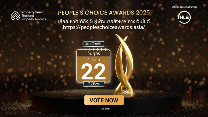 กลับมาอีกครั้ง กับ People’s Choice Awards ร่วมโหวตเฟ้นหาที่สุดแห่งปีรางวัลเกียรติยศที่มอบให้กับบริษัทอสังหาริมทรัพย์ที่ผู้บริโภคชื่นชอบ ในงานประกาศรางวัลของวงการอสังหาริมทรัพย์ที่จัดขึ้นอย่างต่อเนื่องยาวนานที่สุดในประเทศไทย PropertyGuru Thailand Property Awards 2025 เริ่มโหวต 8-22 สิงหาคม 2568 นี้ได้ที่ https://peopleschoiceawards.asia/en/thailand/