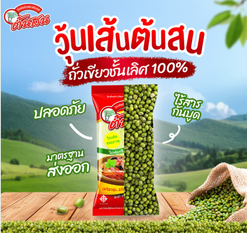 นอกจากนี้ “วุ้นเส้นต้นสน” ยังสามารถตอบโจทย์เทรนด์สุขภาพซึ่งเกิดขึ้นทั่วโลก โดยความโดดเด่นคือ เป็นวุ้นเส้นที่ผลิตจากแป้งถั่วเขียว 100% เส้นเหนียวนุ่ม อร่อย และแบบไม่ฟอกสีที่มีสีเขียวธรรมชาติจากถั่วเขียว ซึ่งเป็นเอกลักษณ์เฉพาะแบรนด์ ที่แตกต่างจากคู่แข่งในตลาด พร้อมคุณสมบัติดัชนีน้ำตาลต่ำ (Low GI) เป็นตัวเลือกที่ตอบโจทย์คนรักสุขภาพและผู้บริโภคยุคใหม่