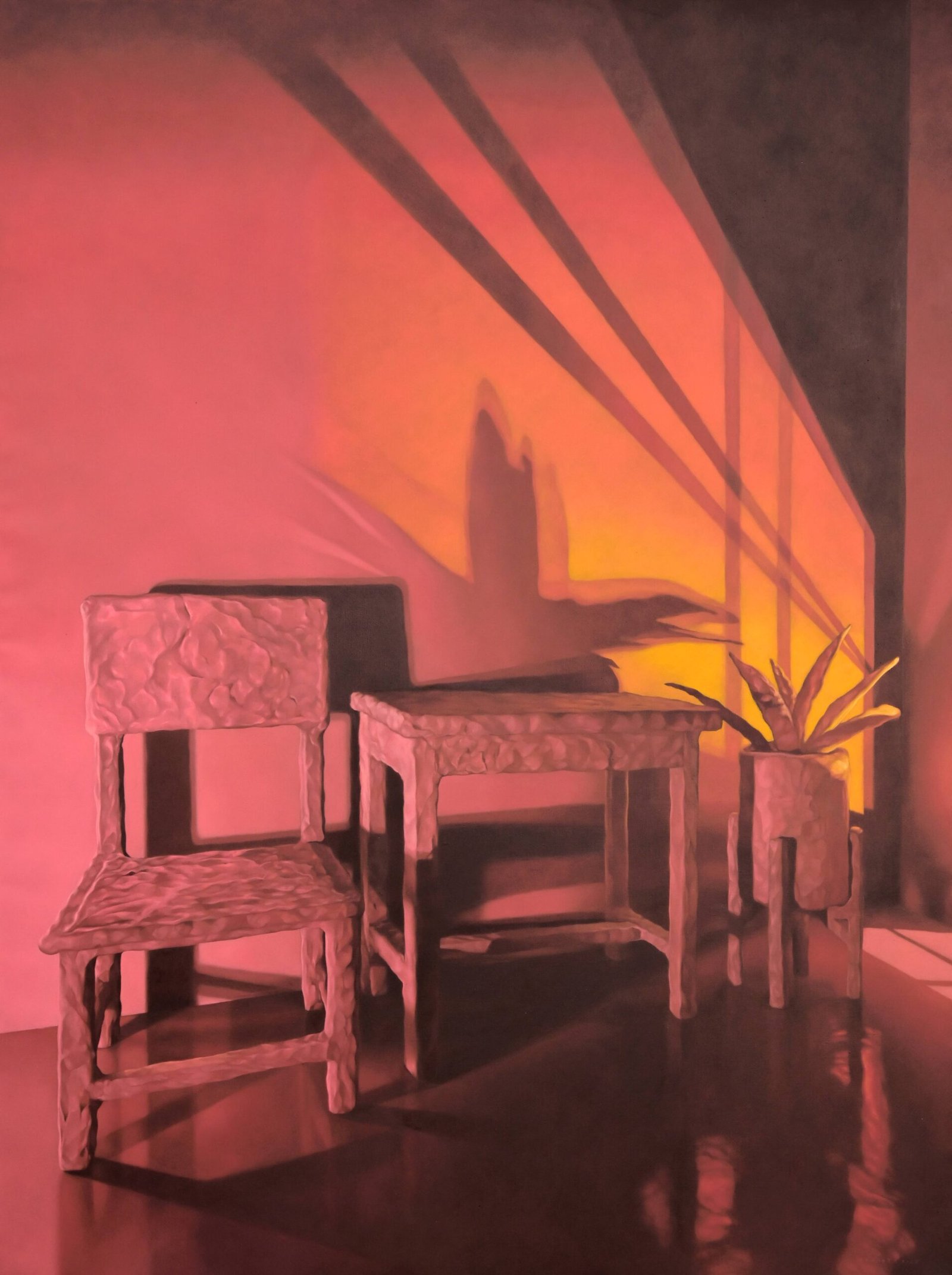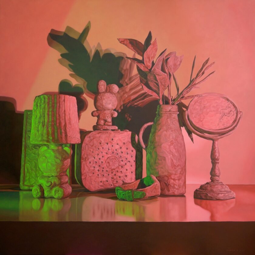 ศิลปินสังเกตความเงียบงันรอบด้านที่เกิดขึ้นในช่วงการแยกตัวจากสังคมระหว่างการระบาดของโรค โดยเขาวาดภาพจัดวางวัตถุในบ้านที่ไร้ชีวิต ตามขนบของจิตรกรรมหุ่นนิ่ง (still life) แต่สิ่งที่เขาวาดเป็นแบบจำลองที่ทำจากดินเหนียว ซึ่งไม่ใช่การเลียนแบบความจริงอย่างสมบูรณ์ หากแต่ลดทอนรายละเอียดด้วยโทนสีโมโนโครม ไร้ป้ายชื่อหรือเอกลักษณ์เฉพาะตัว เพื่อเปิดพื้นที่ให้ผู้ชมตีความหมายด้วยตนเอง สะท้อนหลักจิตวิญญาณที่ว่า “ความหมายเกิดขึ้นจากความเงียบและความว่างเปล่า”