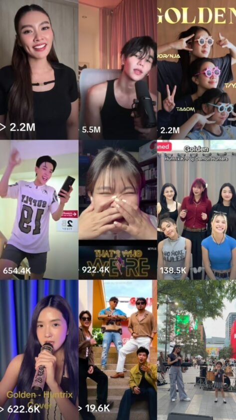 ความไวรัลของ “Golden” ดูจะยังไม่มีทีท่าว่าจะหยุดง่าย ๆ ศิลปินทั่วโลกยังคงแห่ทำชาเลนจ์คัฟเวอร์เพลงนี้กันอย่างต่อเนื่อง ไม่ว่าจะเป็นสายแดนซ์ที่เต้นชาเลนจ์ หรือจะเป็นสายโวคอลที่พิสูจน์พลังเสียงกันเต็มที่ ไม่ว่าจะเป็นสมาชิกวง IVE, Hearts2Hearts, FIFTY FIFTY, BTOB, ITZY, NMIXX หรือจะเป็นศิลปินสายโวคอลตัวแม่อย่าง Bada, Ailee, SOLAR, พัคดาฮเย ฯลฯ ศิลปินไทยก็ร่วมจอยชาเลนจ์นี้กับเขาด้วย ทั้ง แก้ม วิชญาณี, เจฟ ซาเตอร์, ต้าห์อู๋ พิทยา, หนูนา หนึ่งธิดา, โจริญ มายด์ ตาออม 4EVE, MXFRUIT, เบียร์ The Voice, โบว์ สาวิตรี ที่ควงลูกสาวร้องเพลงนี้กลางสยาม, วง Season Five ที่คัฟเวอร์เพลงนี้ในแบบร้องประสานเสียง และอีกมากมาย เรียกได้ว่านาทีนี้ ทุกพื้นที่มีแต่ “Golden” ของจริง ใครอยากลองชาเลนจ์นี้ อย่าลืมใส่แฮชแท็ก #Golden #KPopDemonHunters #HUNTRIX แล้วแท็ก Universal Music Thailand กันด้วยนะ