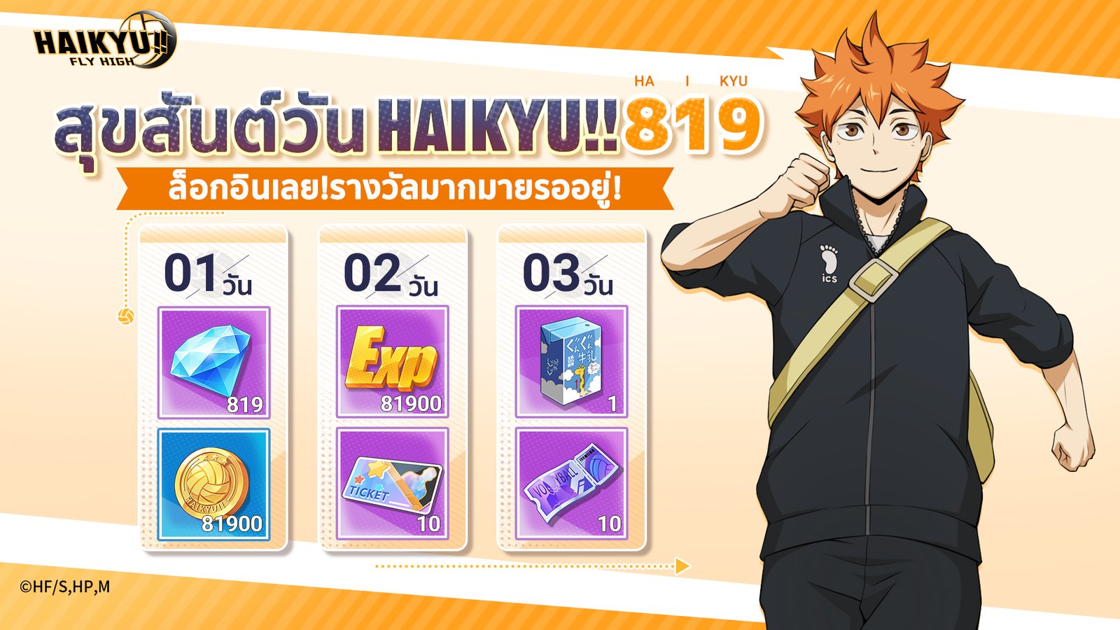 - HAIKYU!! FLY HIGH ฉลองวัน HAIKYU!! ด้วยโบนัสล็อกอินสุดพิเศษ