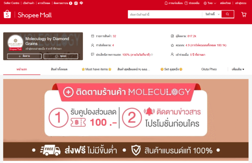 คุณสามารถพิสูจน์คุณภาพของ Moleculogy by Diamond Grains ได้ที่ https://shopee.co.th/moleculogy_by_diamond_grains