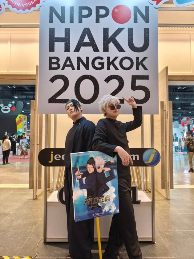 กระแสความแรงของจักรวาล JUJUTSU KAISEN ยังคงพุ่งไม่หยุด เมื่อเหล่าแฟนอนิเมะตบเท้าเข้าร่วมงาน “นิปปอนฮาคุแบงคอก 2025” (NIPPON HAKU BANGKOK 2025) อย่างคึกคัก เพื่อถ่ายภาพกับ Backdrop สุดพิเศษ โดยนำสองตัวละครขวัญใจแฟน ๆ อย่าง โกะโจซาโตรุและเกะโทสุงุรุ มาสร้างสีสันและบรรยากาศสุดเอ็กซ์คลูซีฟ เพื่อต้อนรับการมาถึงของภาพยนตร์อนิเมะที่ทุกคนรอคอย จัดขึ้นระหว่างวันที่ 29 – 31 สิงหาคม 2568 ณ ฮอลล์ 5 – 6 ชั้น LG ศูนย์ประชุมแห่งชาติสิริกิติ์“
