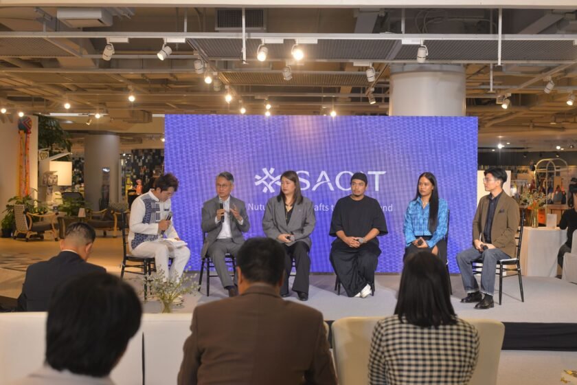 พร้อมกับการเสวนา“Nurturing Thai Crafts to Global Trends” โดยหยิบยกประเด็นบทบาทเชิงรุกของ SACIT ในการเป็น “นักปั้นดาวแห่งหัตถศิลป์ไทยเชื่อมความงามไกลสู่สากล” โดยมีผู้ร่วมเสวนาประกอบด้วย ผศ.ดร.อนุชา ทีรคานนท์ ผู้อำนวยการ SACIT, คุณหัสยา ปรีชารัตน์ ครูช่างศิลปหัตถกรรมไทย ประจำปี 2566 ด้านงานเครื่องเบญจรงค์ เจ้าของแบรนด์ HATSAYA, คุณสาวิน สายมา ทายาทช่างศิลปหัตถกรรม ปี 2568 ด้านงานจักสาน ผู้สร้างสรรค์แบรนด์ Vassana ให้โด่งดังในระดับโลก, คุณอารียา บุญช่วยแล้ว New Young Craft 2025 เจ้าของแบรนด์แฟชั่น INTHAI, และคุณพิพัฒน์ อภิรักษ์ธนากร (ท็อป) ศิลปินนักแสดงผู้สนใจในงานคราฟต์รักษ์โลก ที่ต่างแลกเปลี่ยนมุมมอง แรงบันดาลใจ ประสบการณ์สร้างสรรค์งานศิลปหัตถกรรมไทย และก้าวต่อไปของคราฟต์ไทย ที่เชื่อมโยงองค์ความรู้ ภูมิปัญญา ความคิดสร้างสรรค์ รวมทั้งการคำนึงถึงการสร้างความยั่งยืนในมิติต่าง ๆ ให้กลายเป็นพลังขับเคลื่อนงานศิลปหัตถกรรมไทยให้ก้าวไปสู่เวทีทั้งในและต่างประเทศ