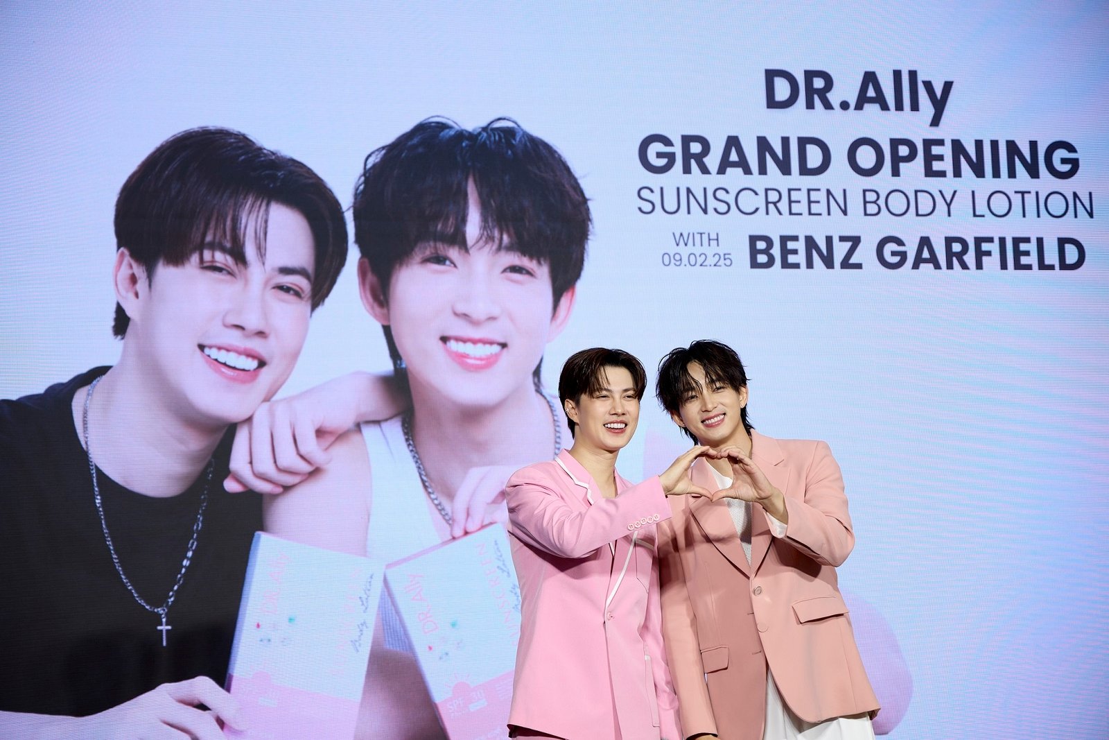 โดยภายในงานเปิดตัว DR.Ally Grand Opening Sunscreen Body Lotion With BenzGarfield ครั้งนี้ “เบนซ์ – กาฟิวส์” มาพร้อมกิจกรรมสุดพิเศษให้เหล่าแฟนคลับที่ได้เข้าร่วมงาน 30 ท่าน ได้ใกล้ชิดกันแบบเอ็กซ์คลูซีฟสุด ๆ ไม่ว่าจะเป็นกิจกรรมเซอร์ไพรส์ของสองหนุ่มที่ลงมาทา DR.Ally Sunscreen Body Lotion กันถึงที่ หรือจะเป็นการเล่นเกมที่ทั้งคู่และแฟนคลับไม่มีใครยอมใคร สร้างความสนุก และเรียกรอยยิ้มกันได้ทั้งงาน รวมถึงในช่วงของแฟนไซน์ และแฟนทอล์กที่ได้พูดคุยกันอย่างจุใจ ก่อนปิดท้ายที่ดินเนอร์สุดอบอุ่นสร้างความประทับใจและความทรงจำที่ดีร่วมกัน