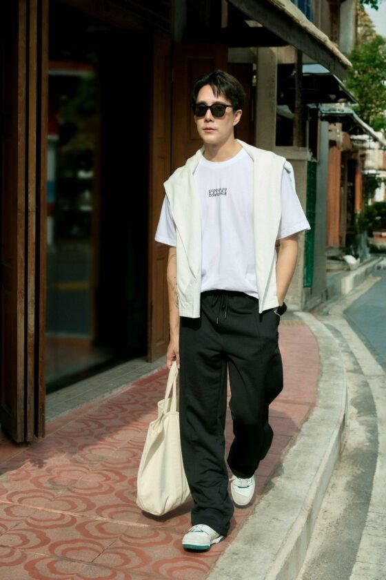 เขื่อน–ภัทรดนัย เสตสุวรรณตัวแทนของความหลากหลายและพื้นที่อบอุ่นให้กับคนรุ่นใหม่ เลือกคาร์ดิแกนมาเลเยอร์คล้องคอทับเสื้อยืดสีขาว พร้อมหยิบกางเกง Sweat pants มาเพิ่มความแคลชวลให้กับลุคนี้ ปิดท้ายด้วยหนุ่มหล่อมาดเข้มที่แฝงไปด้วยความทะเล้น เฟย–ภัทร เอกแสงกุลมาในลุคเท่ๆ กับการแมตช์สีดำทั้งเสื้อยืดและกางเกงเดนิมทรง Straight เติมลูกเล่นด้วยเข็มขัดสไตล์ Western ให้ลุคเท่ เข้ม แต่มีกลิ่นอายของความสบายแฝงอยู่