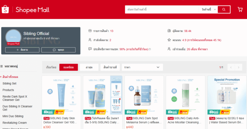 ช้อปปี้ (ประเทศไทย) ถ่ายทอดเส้นทางความสำเร็จของ Sibling Official แบรนด์สกินแคร์เพื่อผิวแพ้ง่าย ที่เริ่มต้นจากปัญหาผิวที่ไม่มีที่พึ่ง ก้าวขึ้นมาเป็นผู้บุกเบิกให้ปรึกษาด้านผิวฟรีสำหรับทุกคน จากจุดขายที่แตกต่างนี้ สามารถเติบโตสู่ธุรกิจหลักร้อยล้านได้สำเร็จ ปัจจัยสำคัญไม่เพียงมาจากคุณภาพของผลิตภัณฑ์และการดูแลลูกค้าอย่างจริงใจเท่านั้น แต่ยังรวมถึงการเลือกให้ Shopee เป็นช่องทางสำคัญในการขยายฐานลูกค้าใหม่ทั่วประเทศไทย