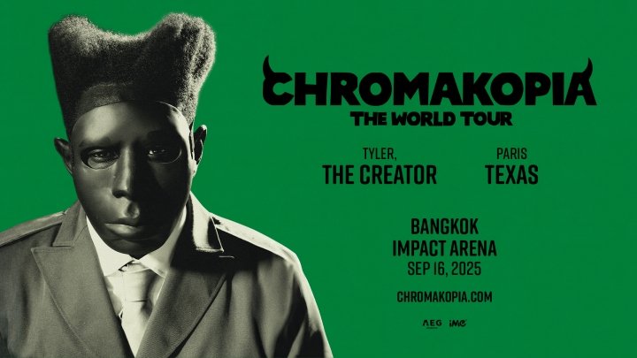 อีกไม่ถึง 1 สัปดาห์! กรุงเทพฯ กำลังจะลุกเป็นไฟไปกับค่ำคืนแห่งเสียงดนตรีสุดเดือดจากศิลปินฮิปฮอประดับโลก Tyler, The Creator ที่พร้อมยกเวิลด์ทัวร์สุดยิ่งใหญ่ CHROMAKOPIA: THE WORLD TOUR มาเสิร์ฟความมันส์ให้แฟนเพลงชาวไทยถึงที่ ในวันที่ 16 กันยายน 2568 เวลา 20.00 น. ณ อิมแพ็ค อารีน่า เมืองทองธานี การันตีโดยผู้จัดคอนเสิร์ตระดับโลก AEG Presents Asia และ iMe Thailand ที่เตรียมเนรมิตโปรดักชันสุดอลังการ แสง สี เสียง และพลังการแสดงที่แฟน ๆ จะได้สัมผัสอย่างใกล้ชิด