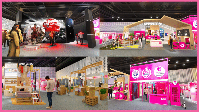 ภายในงานทั้ง 2 วันยังมีโซนนิทรรศการที่น่าสนใจ 5 โซน ได้แก่ 1) โซน SDx Pavillion: Demographic and Climate Crises นำเสนอสถานการณ์ แนวโน้ม ผลกระทบของ “วิกฤตซ้อนวิกฤต : โครงสร้างประชากรและสภาพภูมิอากาศ” ทั้งในระดับโลก ภูมิภาค และประเทศ ผ่าน จอ LED ลูกโลกขนาดใหญ่