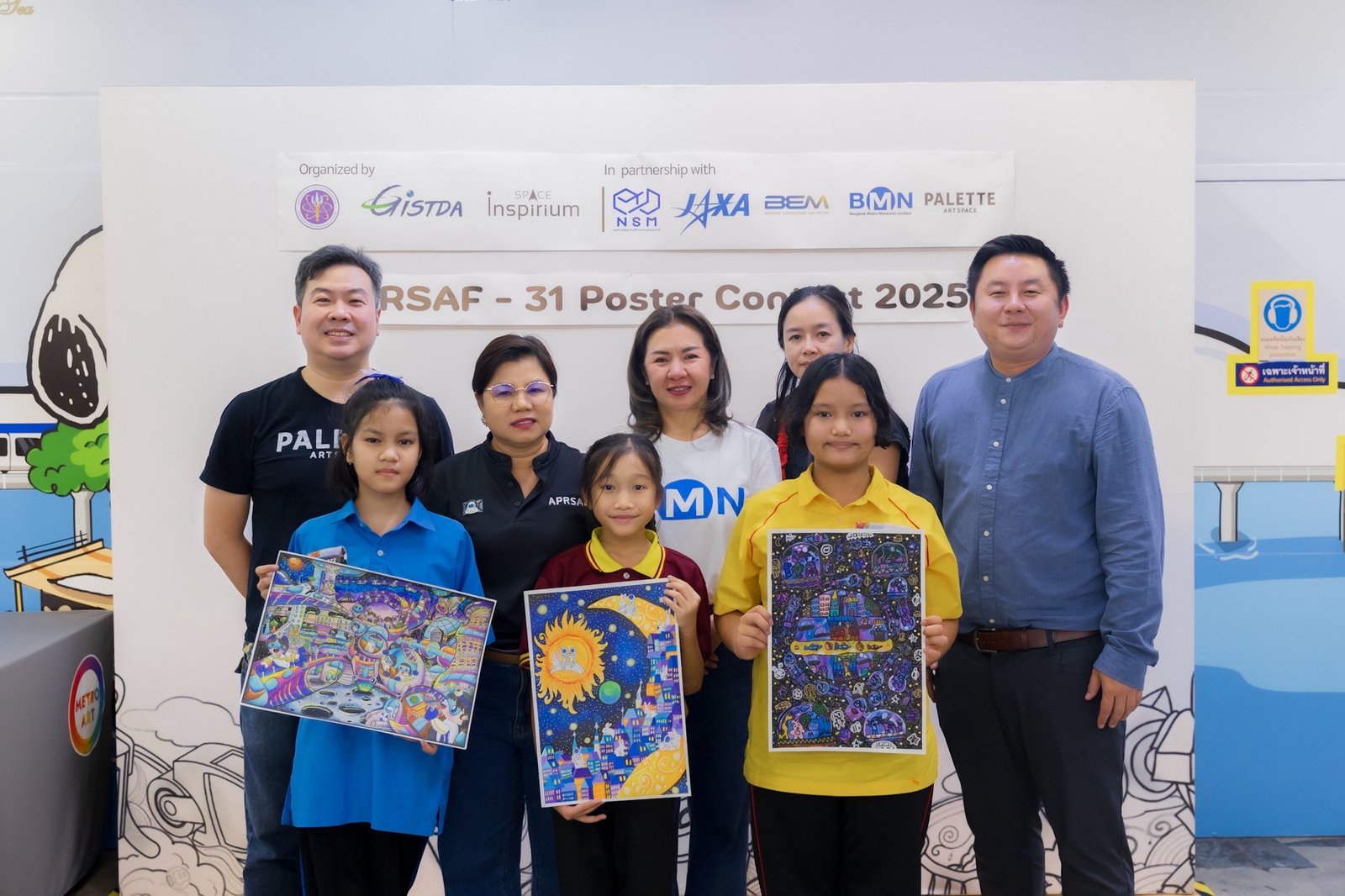 การประกวดภาพวาด APRSAF – 31 Poster Contest 2025 รอบชิงชนะเลิศ ผู้ชนะและได้รับคัดเลือก เป็นตัวแทนประเทศไทย 3 ผลงานที่โดดเด่นที่สุด เข้าประกวด (sparkles) ณ ประเทศฟิลิปปินส์ ได้แก่