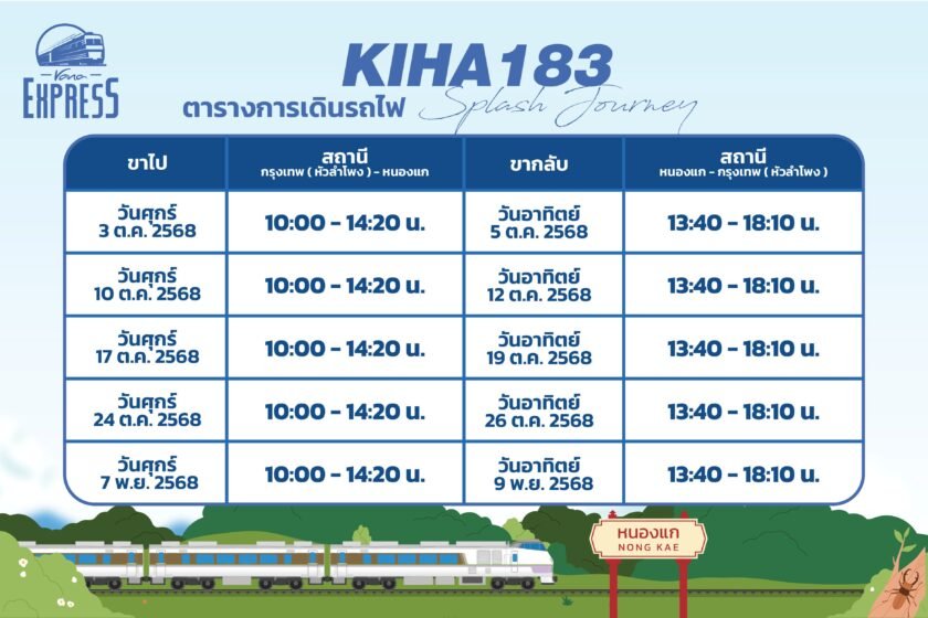 กลุ่มบริษัทพราว ผู้พัฒนาและบริหารโครงการท่องเที่ยวและโรงแรมชั้นนำในหัวหิน สร้างปรากฏการณ์ครั้งสำคัญ เปิดตัวโปรเจกต์ “KIHA 183 Splash Journey” ประสบการณ์การเดินทางครั้งประวัติศาสตร์ที่นำรถไฟคลาสสิกจากญี่ปุ่น KIHA 183 มามอบความสุขให้นักท่องเที่ยวไทย เส้นทางกรุงเทพฯ (สถานีหัวลำโพง) – หัวหิน (สถานีหนองแก) พร้อมพาทุกท่านสู่โลกแห่งความสนุกที่ สวนน้ำวานานาวาวอเตอร์จังเกิ้ลหัวหิน และการพักผ่อนสุดพิเศษที่ อินเตอร์คอนติเนนตัลหัวหินรีสอร์ทและ ฮอลิเดย์อินน์วานานาวาหัวหิน ให้บริการทุกสุดสัปดาห์ (เฉพาะวันศุกร์ – วันอาทิตย์) ตลอดเดือนตุลาคม 2568 โดยจำกัดเพียง 200 ที่นั่งต่อสัปดาห์เท่านั้น