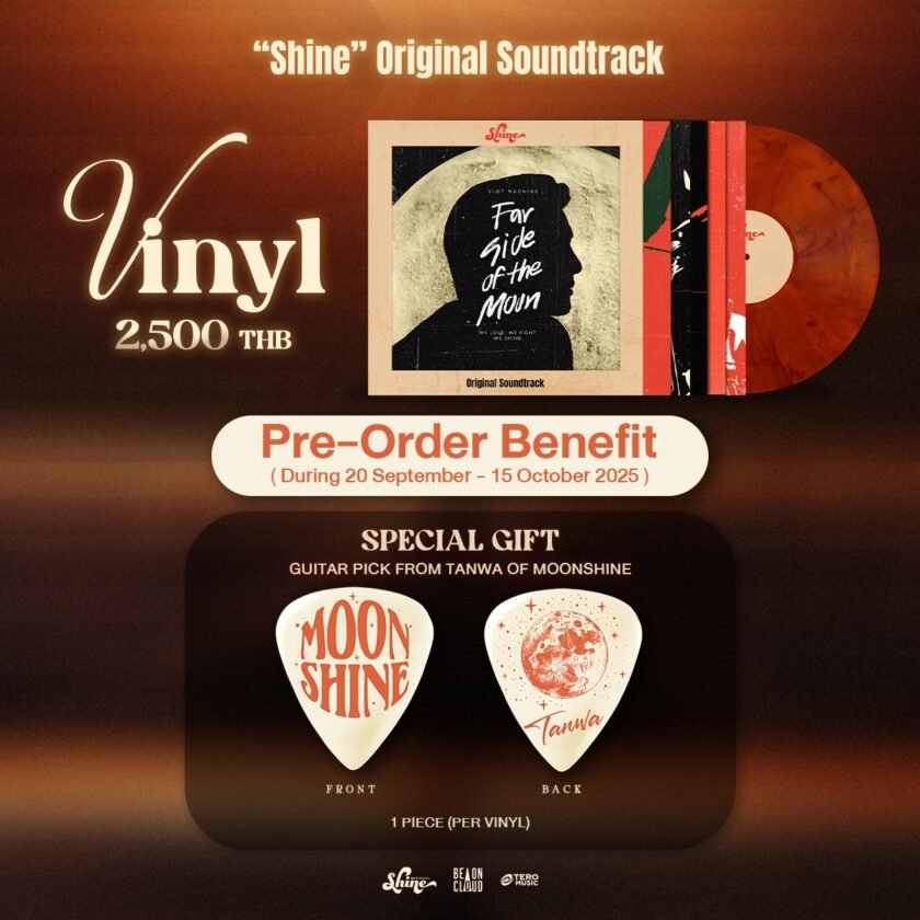 Vinyl “Shine” Original Soundtrack Album จะได้รับ ปิ๊กกีต้าร์ของ ธันวา วง Moonshine จำนวน 1 ชิ้น / 1 แผ่น Vinyl