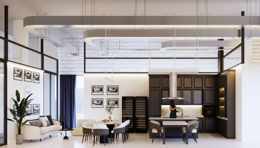 - Combined Living Space รวม Pantry, Dining และ Living ในพื้นที่เดียวกัน เชื่อมทุกมุมบ้าน